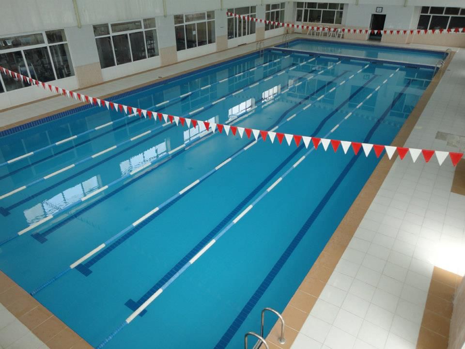 В многофункциональном спорткомплексе для взрослых и детей находятся 4 помещения с бассейном: олимпийский, тренировочный, дайвинг-бассейн и летний. Действует круглосуточная фильтрация воды физическим (Perlit) и химическим методами.