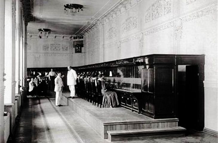 Сначала телефоны использовались только в рабочих целях, а абонентов было всего несколько десятков. Соединение выполнялось вручную: телефонистки переключали линии на специальном коммутаторе.